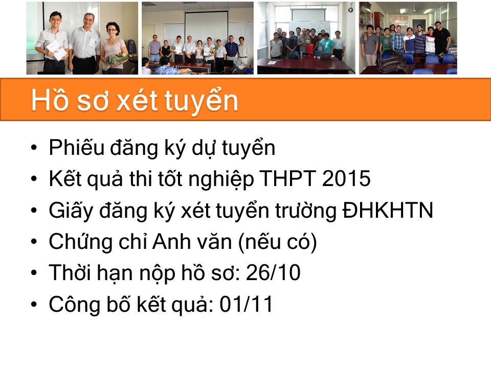 • Giấy báo nhập học vào trường ĐH Khoa học Tự nhiên – ĐHQG HCM (bản sao), hoặc