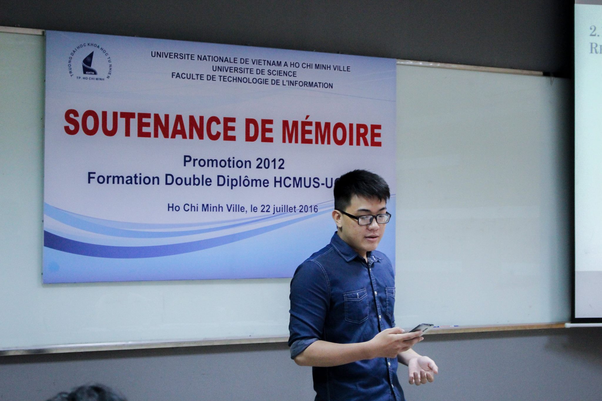 Đến tham dự buổi bảo vệ khóa luận còn có đại diện phía Văn phòng AUF tại Thành phố Hồ Chí Minh, ông Nguyễn Tấn Đại.